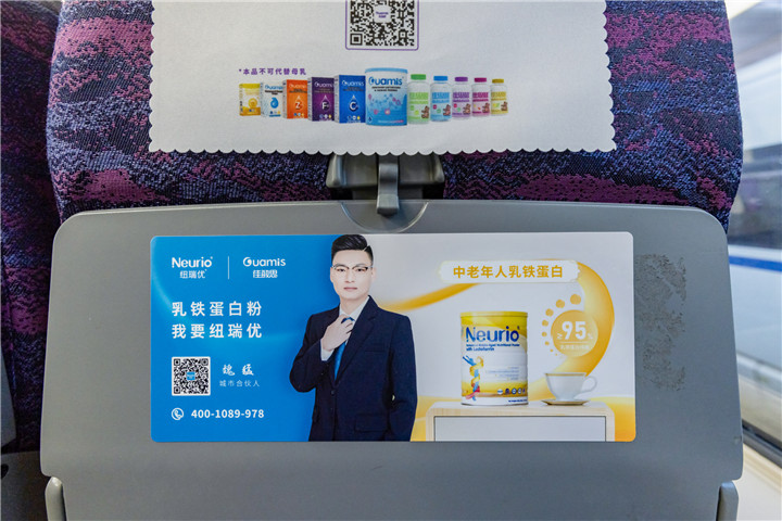 在此次高鐵廣告上,紐瑞優(yōu)繼續(xù)以桌貼、頭枕片、海報(bào)、行李架彩貼、車(chē)外門(mén)貼、語(yǔ)音播報(bào)等全組列車(chē)全矩陣廣告形式,結(jié)合以桌貼為主的多組列車(chē)重點(diǎn)廣告形式,創(chuàng)新性引入紐瑞優(yōu)重點(diǎn)合作伙伴形象代言,全面打造紐瑞優(yōu)經(jīng)銷(xiāo)商質(zhì)量信任代言聯(lián)動(dòng)的新模式,充分展現(xiàn)“紐瑞優(yōu)我信任我代言”的移動(dòng)展覽廳,帶給消費(fèi)者沉浸式信任體驗(yàn)場(chǎng)景。