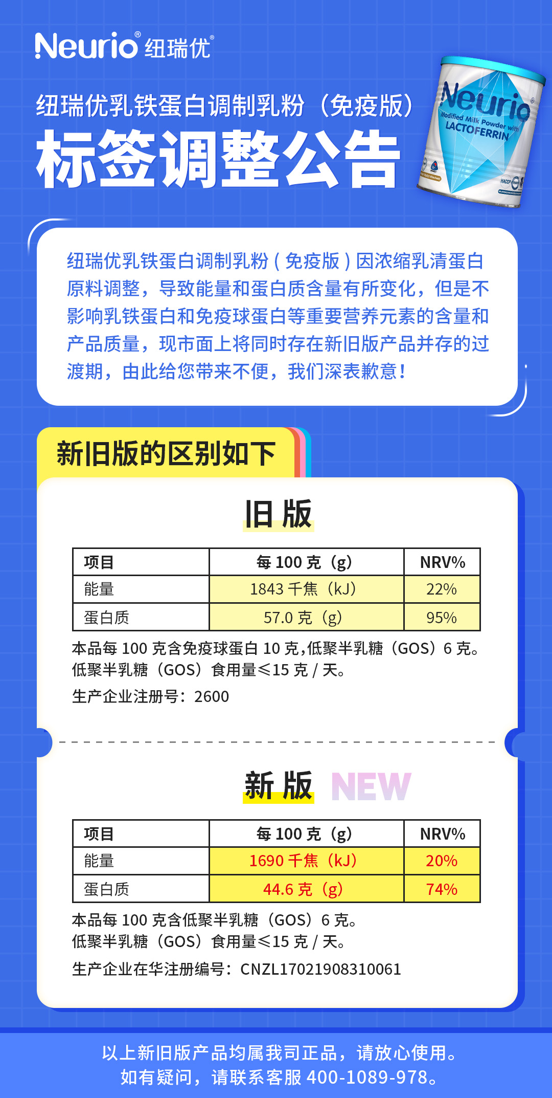 紐瑞優(yōu)乳鐵蛋白調(diào)制乳粉(免疫版)標(biāo)簽調(diào)整公告