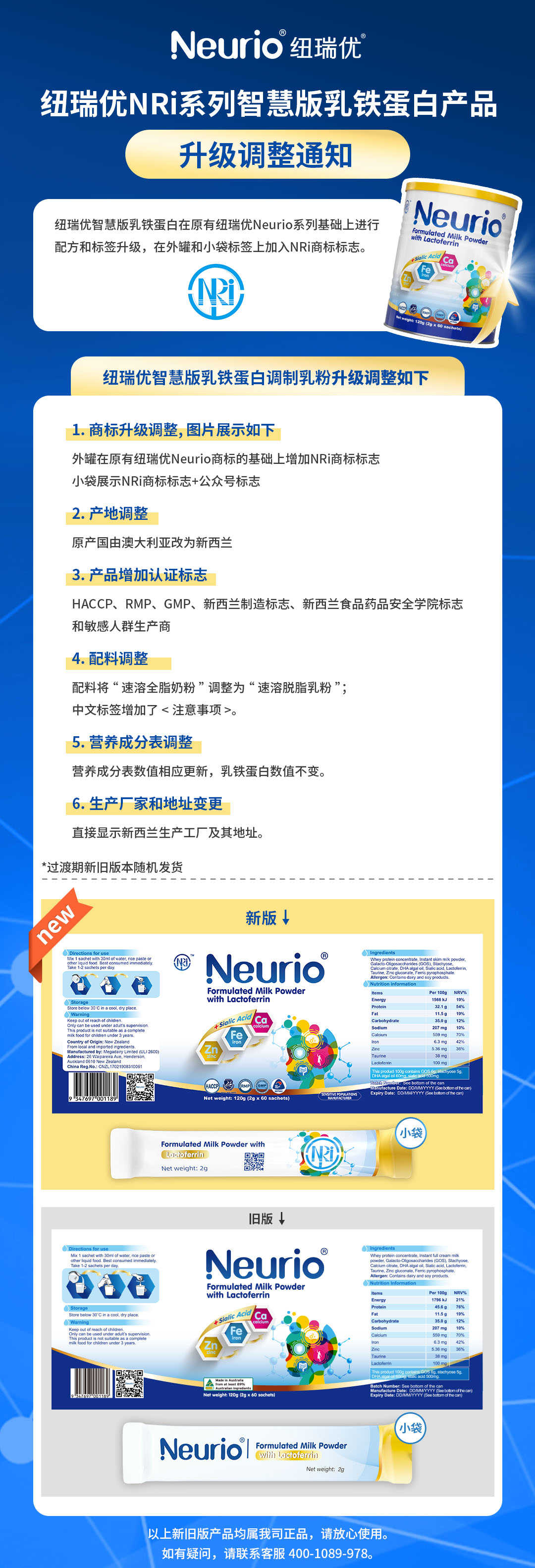 紐瑞優(yōu)NRi系列智慧版乳鐵蛋白產(chǎn)品全新升級(新舊版包裝對比圖)
