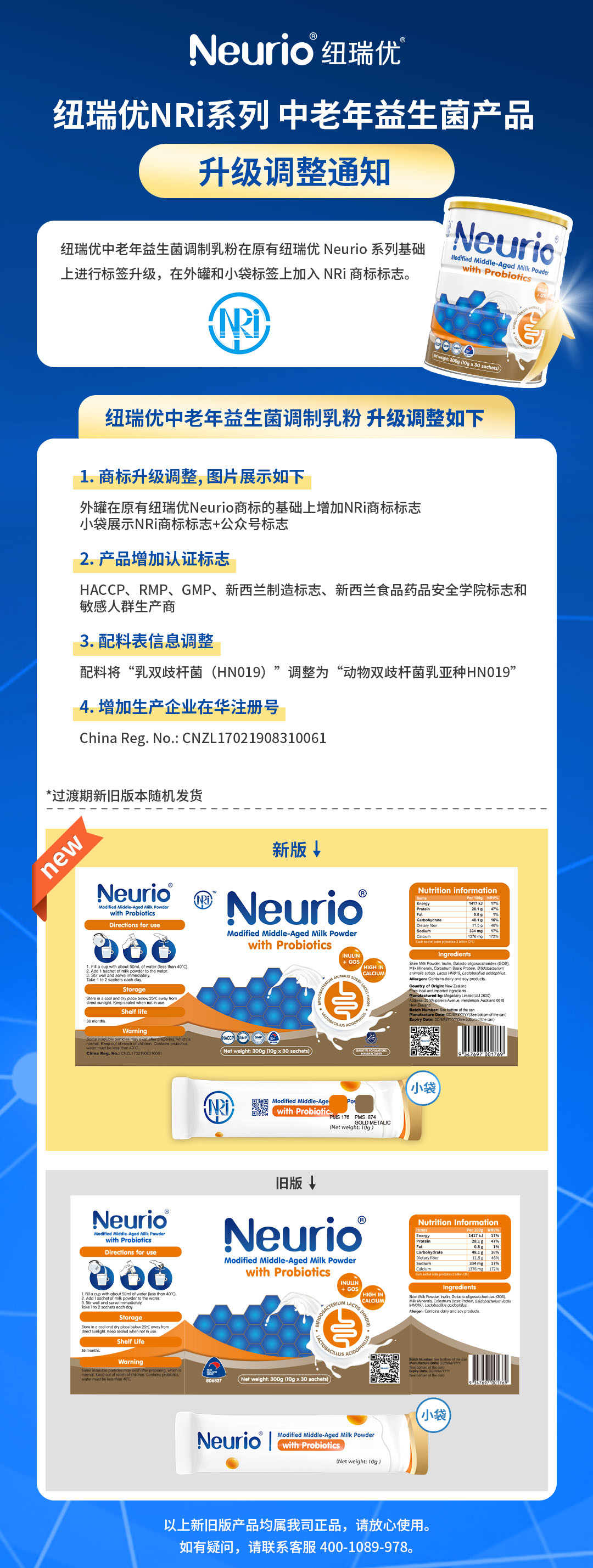 紐瑞優(yōu)NRi系列中老年益生菌產(chǎn)品全新升級(新舊版包裝對比圖)