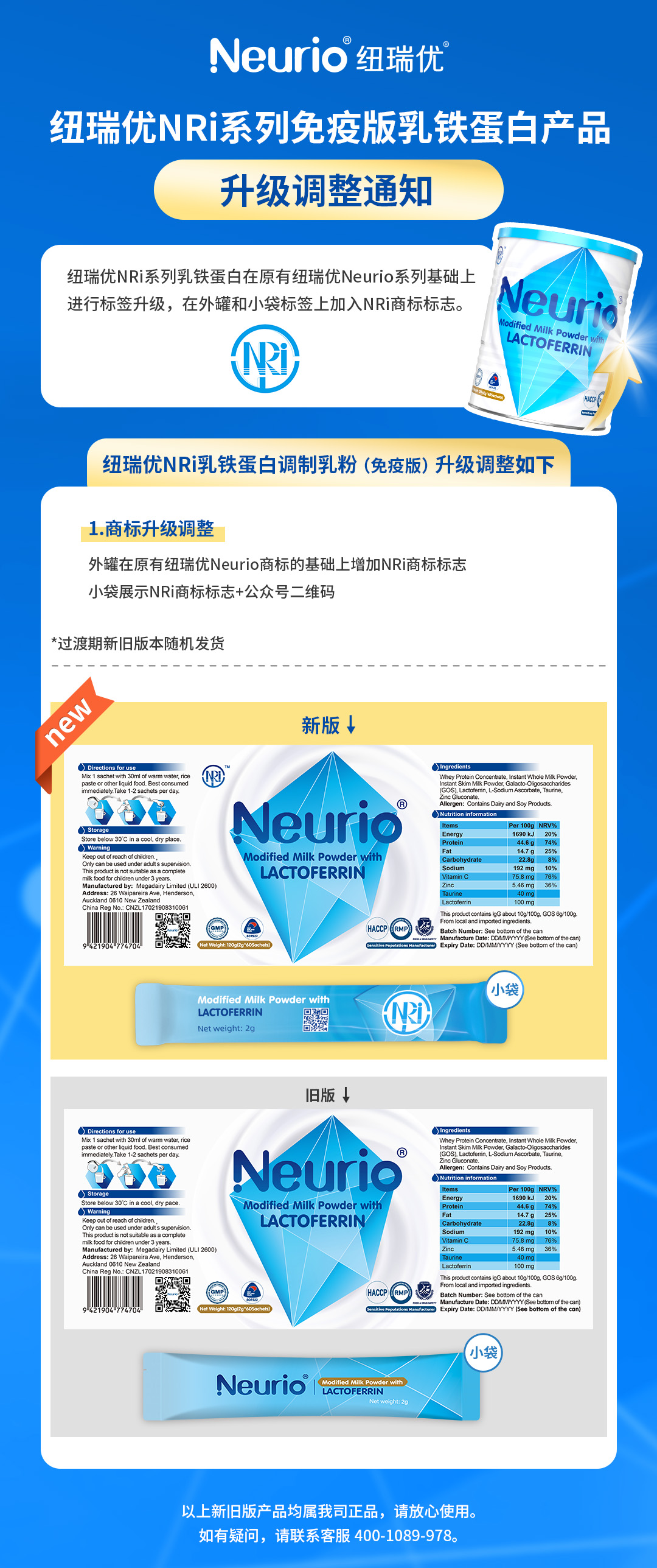 紐瑞優(yōu)NRi系列免疫版乳鐵蛋白產(chǎn)品升級調(diào)整通知