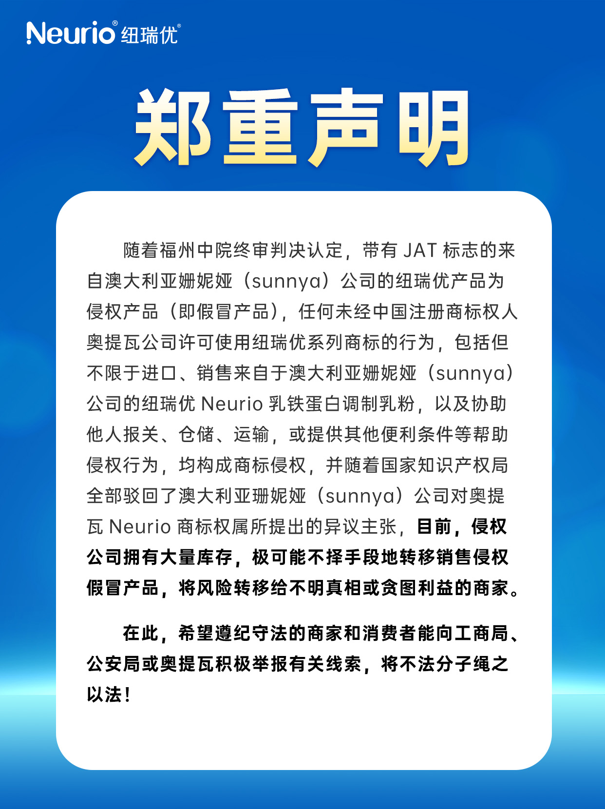 關于紐瑞優(yōu)系列商標維權進展的最新通報
