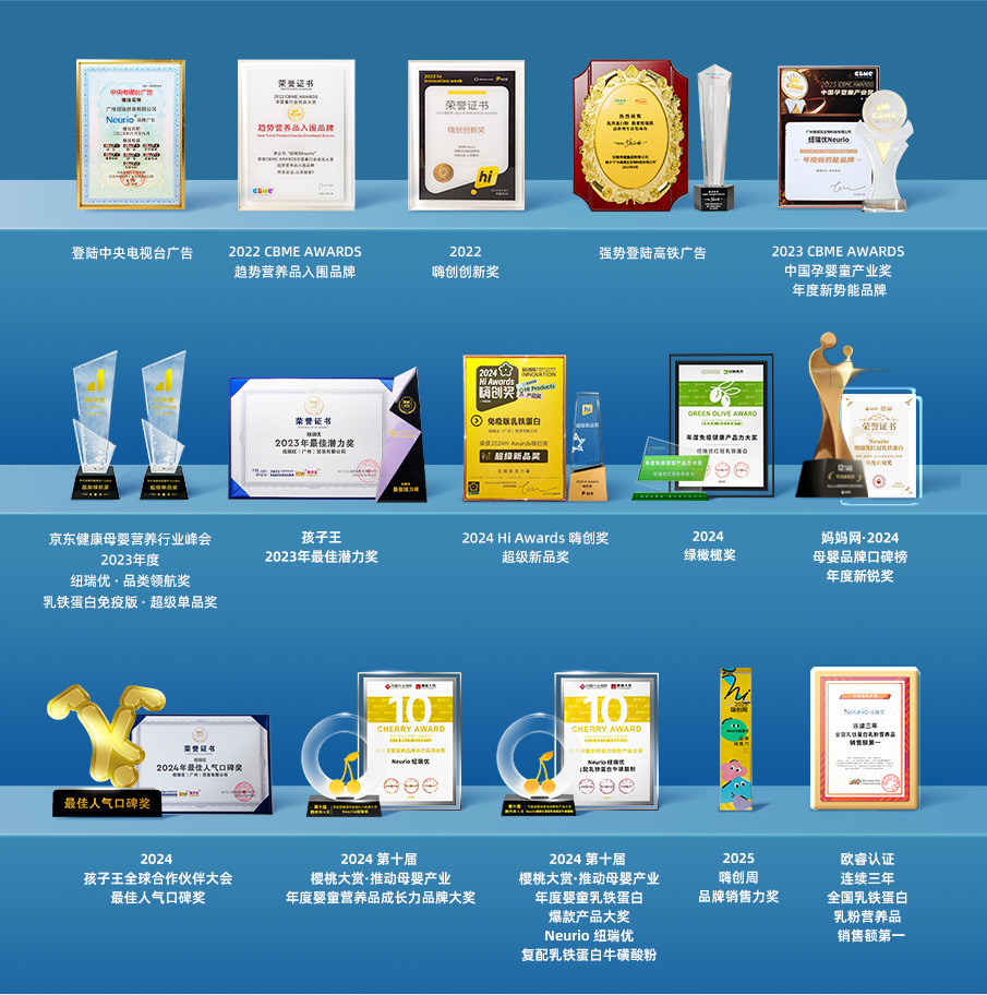 2025年4月20日,京東平臺為紐瑞優(yōu)品牌頒發(fā)了 2025 年京東平臺乳鐵蛋白品類先鋒獎——紐瑞優(yōu)乳鐵蛋白連續(xù)6年TOP1。這一榮譽(yù)不僅是對紐瑞優(yōu)過往成就的高度認(rèn)可,詮釋母嬰健康領(lǐng)域持續(xù)深耕、不懈追求卓越的標(biāo)桿力量,更是萬千家庭信賴的見證!